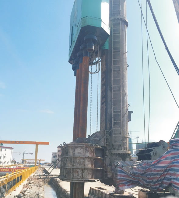HY系列多軸式連續(xù)墻鉆孔機是應用于SMW工法的新一代地基加固施工設備,達到國際先進水平,具有完全自主知識產(chǎn)權,可廣泛應用于高層建筑、地鐵車站的深基坑圍護,江河堤壩的防滲加固和軟土地基的改良加固。 采用變頻器控制電箱,啟動時對電網(wǎng)沖擊小,節(jié)能安全,有故障自檢及自我保護功能; 三電機并五軸聯(lián)動,動力能均分,850鉆機每根鉆桿動力均在66kw以上,700鉆機每根鉆桿動力均在54kw以上,遇復雜地質(zhì)可自動實行各鉆桿間動力互補;配套96000扭米減速機。 可根據(jù)需要停用一個電機,更環(huán)保節(jié)能; 個性化使用,可根據(jù)需要改為三軸、單軸鉆機使用; 動力頭設計外形結構緊湊并采用機架裝配式; 高品質(zhì)零配件,使用長效,安裝維修便利; 專業(yè)售后服務團隊,使用更安心無憂。 項目 | 單位 | HY220/70-5 | HY330/85-5 | 鉆孔直徑 | mm | Φ700×Φ700×Φ700 | Φ850×Φ850×Φ850 | 鉆孔個數(shù) | 個 | | | 電動機功率 | kW | 220(110×2) | 330 (110×3) | 鉆桿額定轉(zhuǎn)度 | r/min | 21 | 26 | 鉆桿額定扭矩 | kN·m | 28.5 | 40.4 | 鉆桿直接及壁厚 | mm | Φ219×22 | Φ273×25 | 鉆桿中心距
